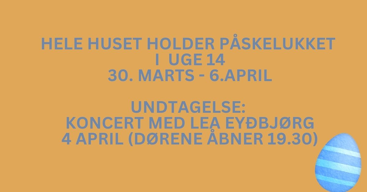 OBS! LUKKET I UGE 14 pga. PÅSKE
