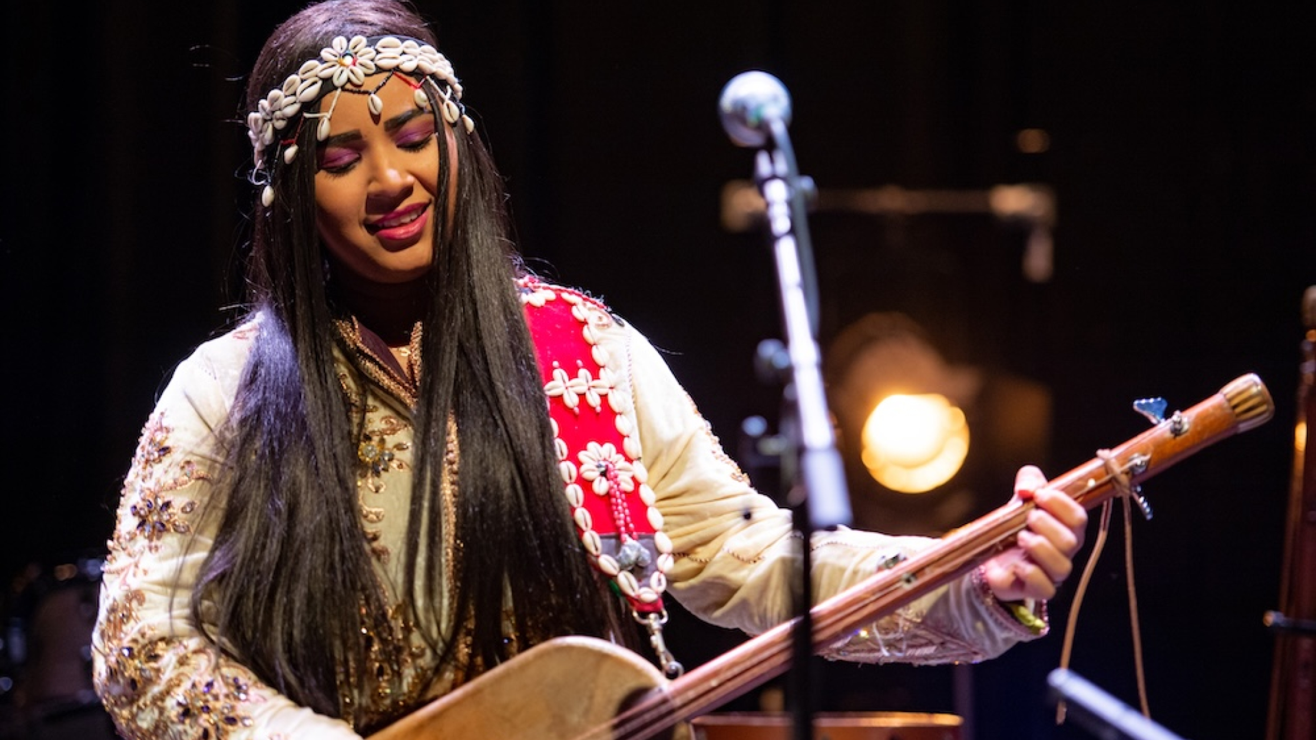 Oplev den banebrydende lyd af moderne Gnawa, når Asmaâ Hamzaoui – Marokkos førende kvindelige maalma – gæster Huset med sit stærke, all-women ensemble Bnat Timbouktou. Med dybe trance-rytmer, guembriens pulserende klang og hypnotiske vokaler forener de århundreders åndelig tradition med en ny, kraftfuld kvindelig energi. En intens, spirituel og medrivende koncertoplevelse, der bringer Gnawa-musikken ind i nutiden med både tyngde og elegance